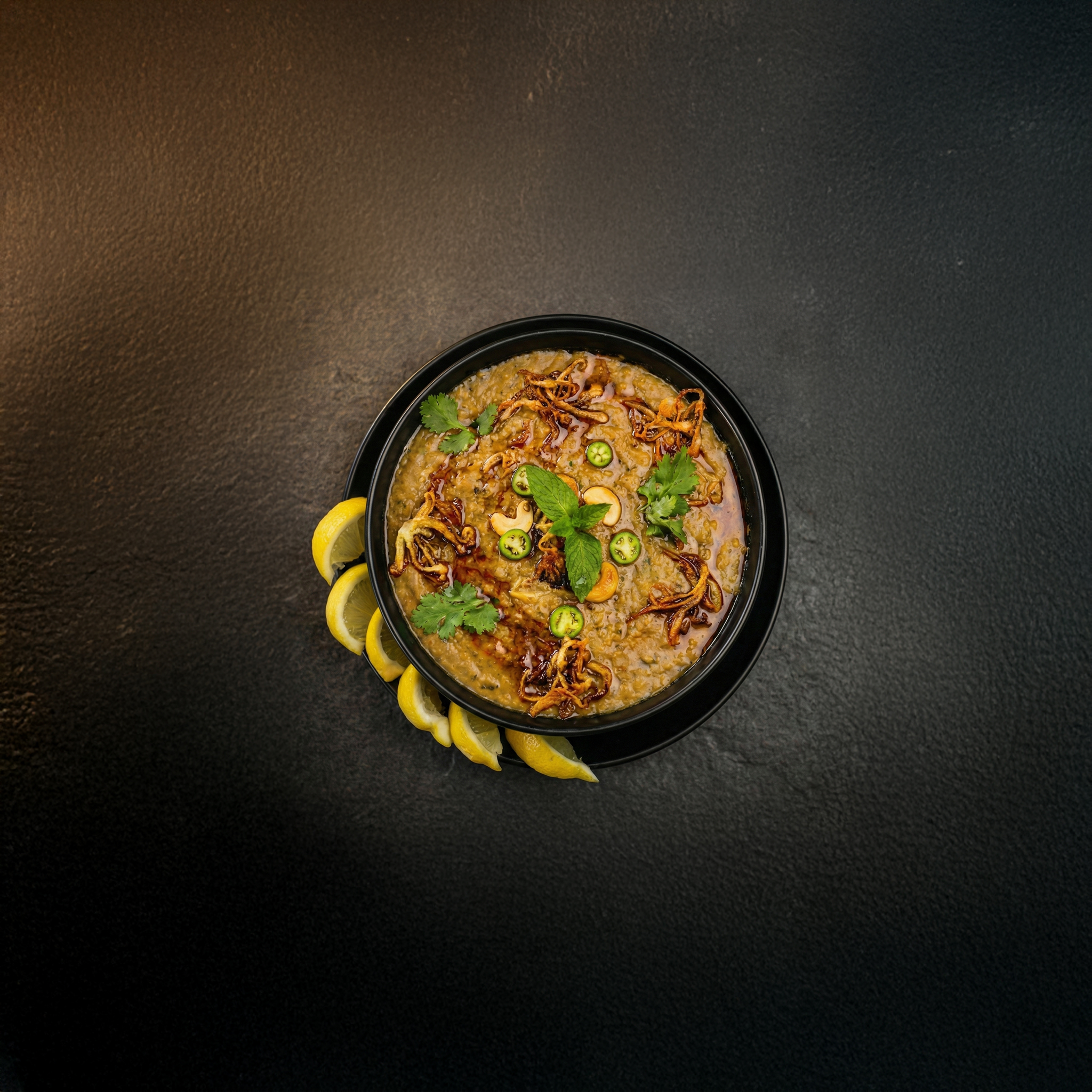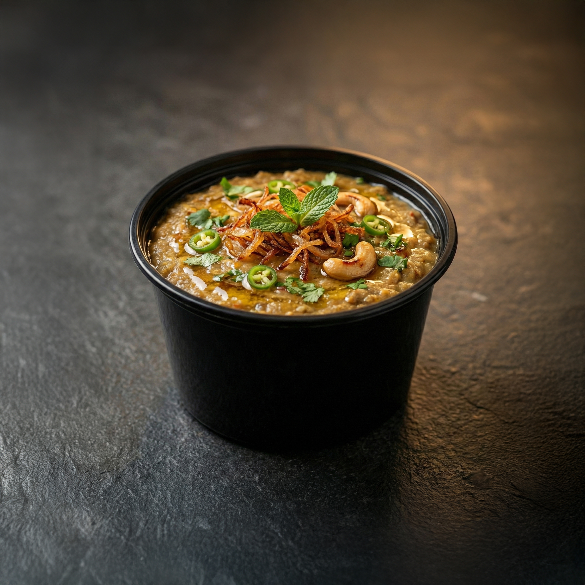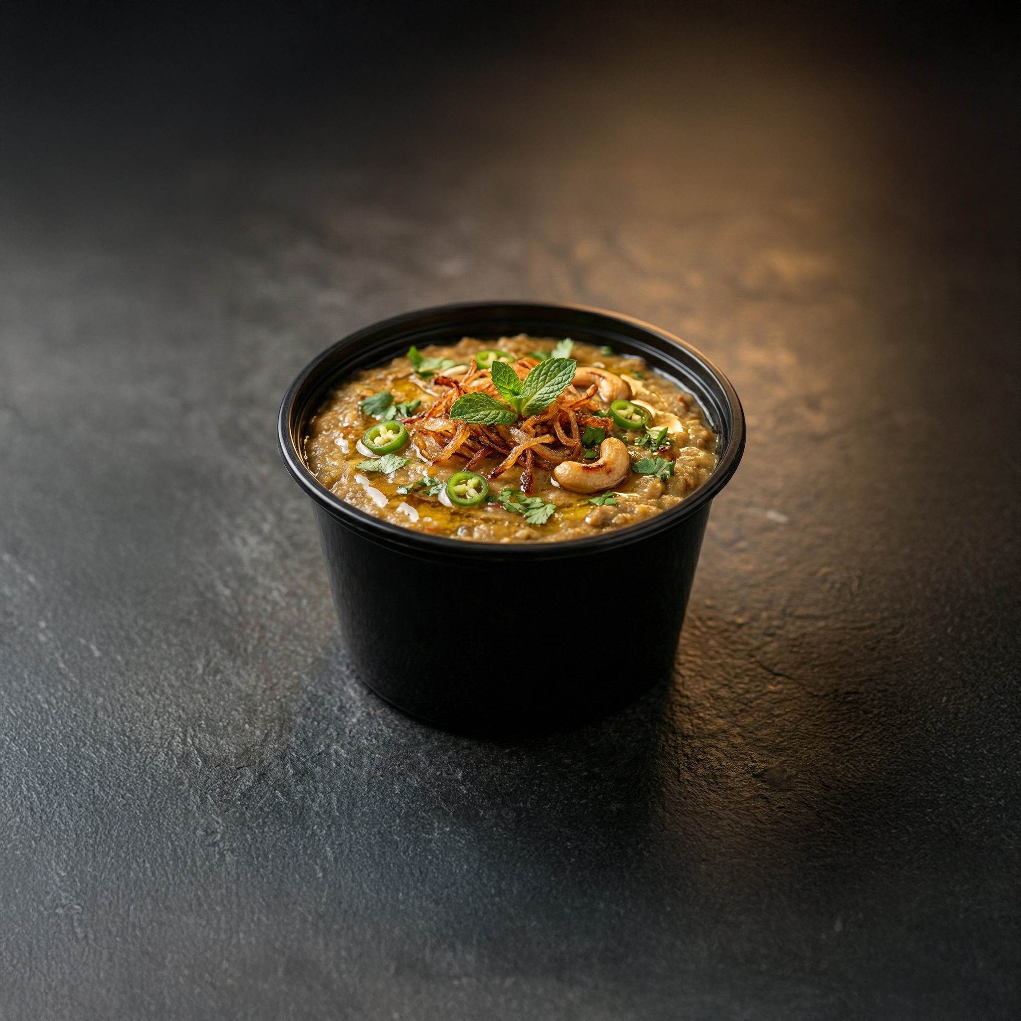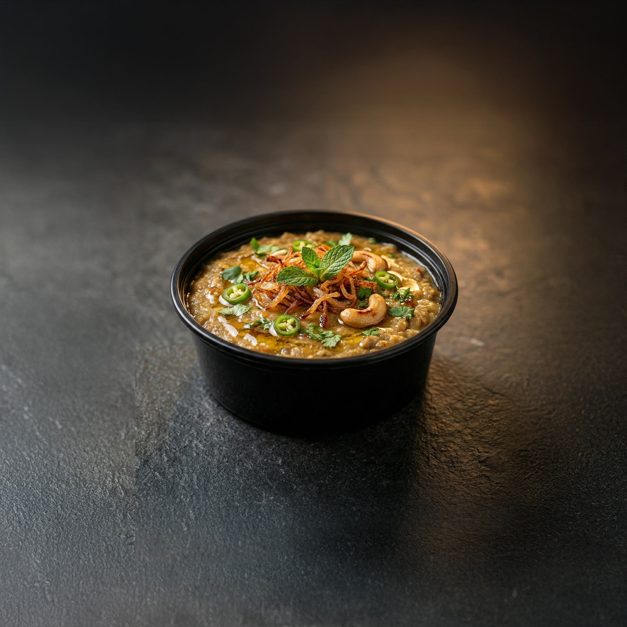 Slow-cooked to perfection, our Haleem is rich, creamy, and deeply flavorful — topped with crispy fried onions, fresh herbs, and a touch of ghee for the ultimate indulgence.